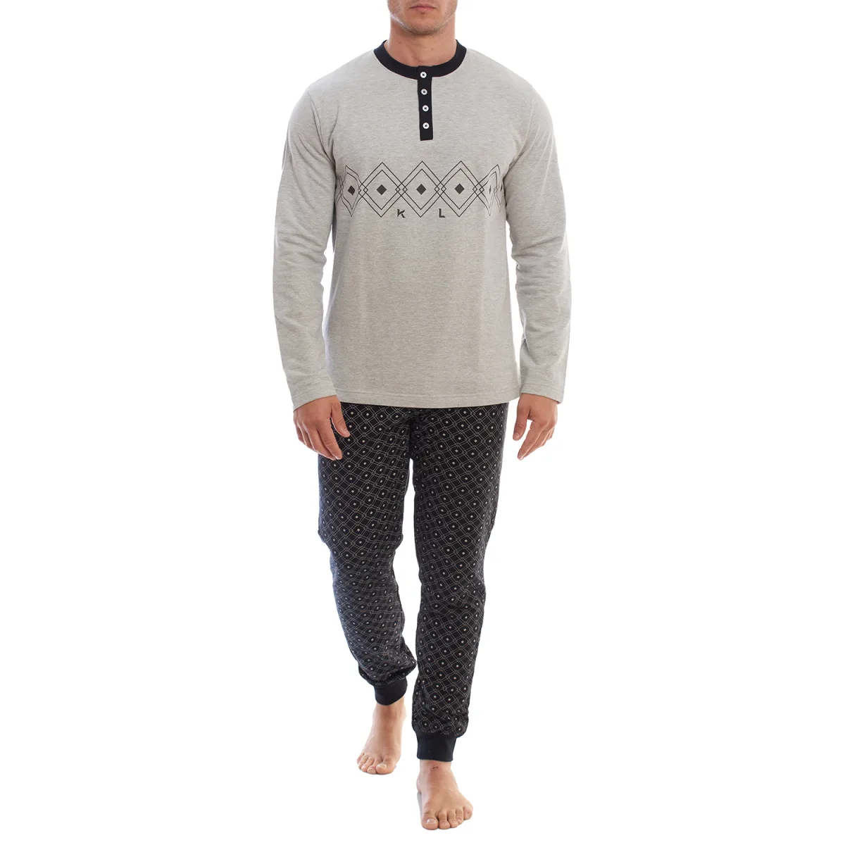KLP3 Heren Lange Mouwen Fleece Winterpyjama