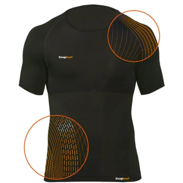 Knap'Man Zoned Compression Shirt Crew-Neck USP20 km00502 Het shirt is uitermate geschikt voor zowel dagelijks gebruik als gebruik tijdens het sporten. De unieke, gerichte compressiezones stimuleren het lichaam een actieve houding aan te nemen en zorgen voor een verbeterde bloedsomloop. Bovendien worden romp, borst en rug extra ondersteund. Rugklachten kunnen aanzienlijk worden verminderd. Een lange dag op het werk is beter vol te houden en een rugblessure zal je niet langer beperken tijdens het sporten. Product eigenschappen: * Knap'man is gemaakt van MaxClima™ textiel: * Extra draagcomfort en perfecte pasvorm * Buitengewone luchtdoorlatendheid * CoolTouch en SoftFeel toepassingen * Vocht- en warmteregulerend * Sneldrogend * Permanent ingebouwde zilverionen tegen ongewenste geuren * Antibacteriële werking