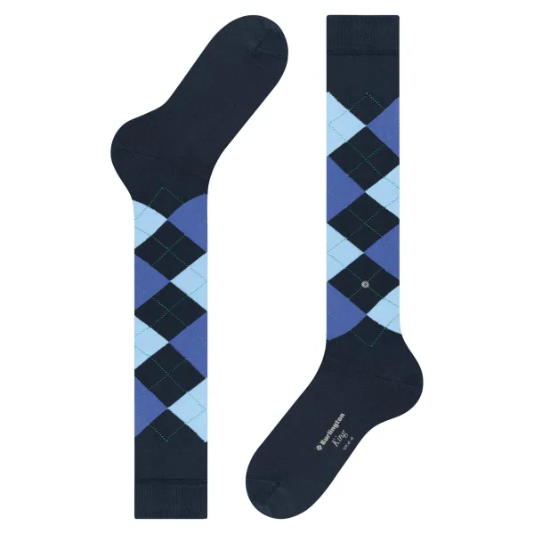 Burlington King lang gedessineerd katoen kniekousen heren blauw - maat...