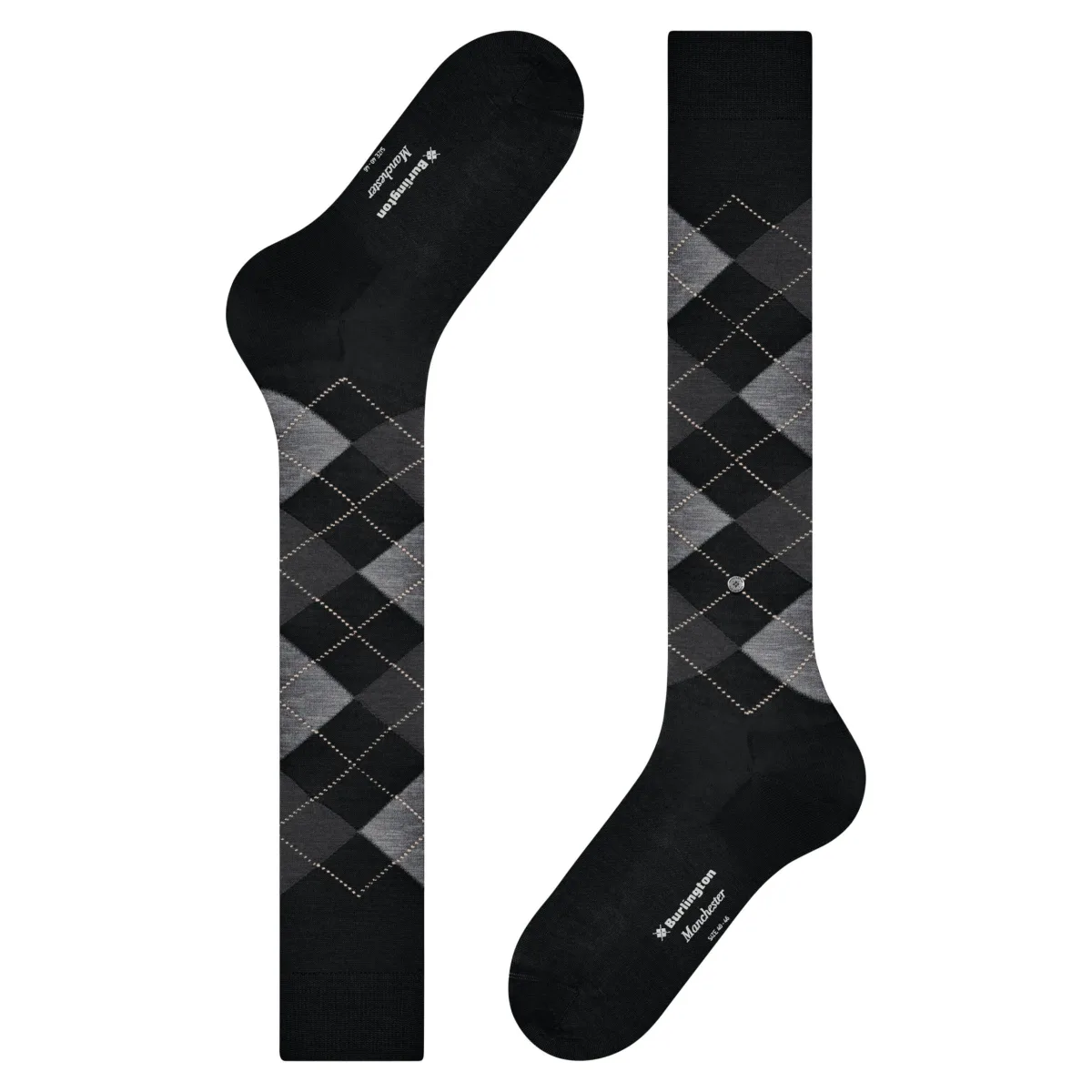 Burlington Manchester verstevigde platte naad katoen kniekousen heren zwart -...