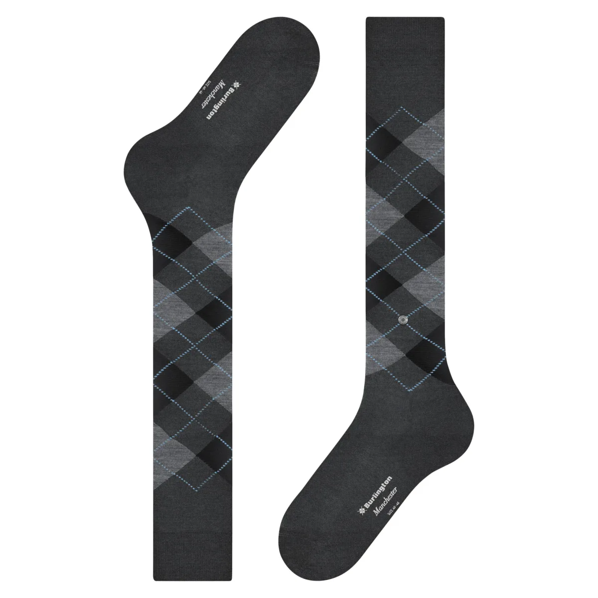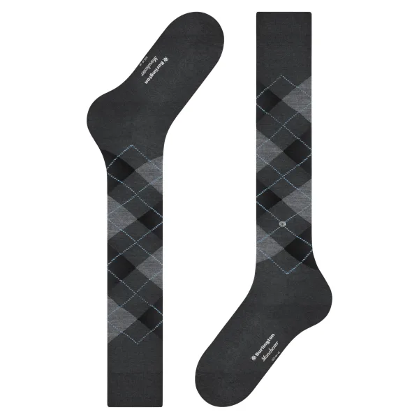 Burlington Manchester verstevigde platte naad katoen kniekousen heren grijs -...