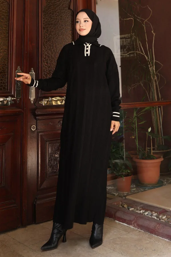 Stofkenmerk: Gemaakt van gebreide stof. Productkenmerk: Nieuw seizoens hijab modeproduct. Ongevoerd. Het heeft drie bruikbare knopen aan de voorkant. Flexibele stof. De productkleur kan variëren door conceptfoto's. Het is de Standaardmaat op het model. Standaardmaat Gebreide Jurk Maten: Productlengte: 136 cm - Borst: 120 cm - Taille: 112 cm - Heupen: 116 cm