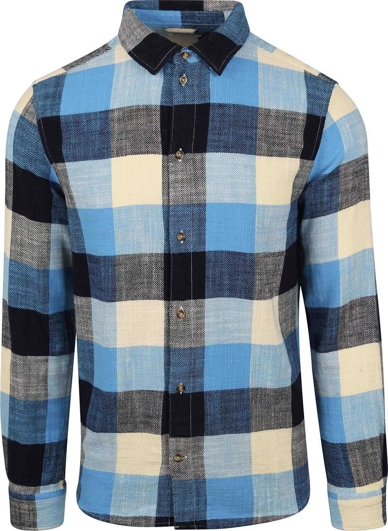 KnowledgeCotton Apparel Overhemd Blauw Ruiten Prijzen