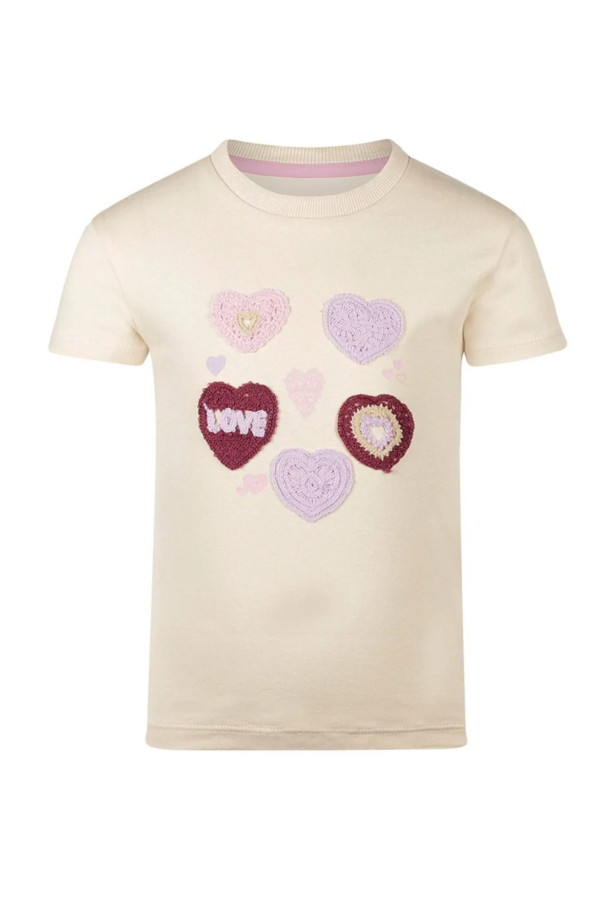 Dit T-shirt van Koko Noko voor meisjes heeft een ronde hals en korte mouwen. Het gebreide patchwork in beige, lila en donkerrood geeft een speelse uitstraling. Gemaakt van katoen met een vleugje elastaan voor comfort.