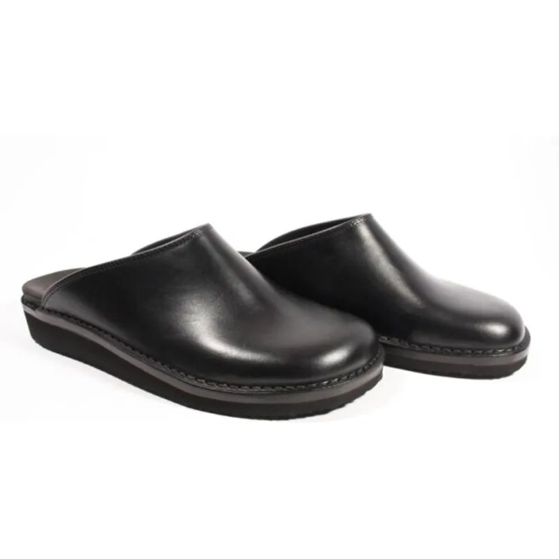 Merk: Kops, Model: Pantoffels, Materiaal: Leer, Kleur: Zwart