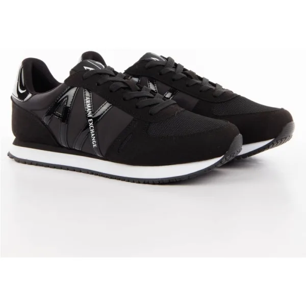 Armani Exchange Line AX damessneakers, zwart polyester. Authentieke Armani Exchange merkschoen - streetwear/sportwear design van Armani Exchange - Armani Exchange voor dames, modieus en perfect voor dagelijks gebruik - zwarte Armani Exchange sneakers passen perfect bij je garderobe - comfortabel polyester materiaal - klassieke veters - Line AX - synthetisch