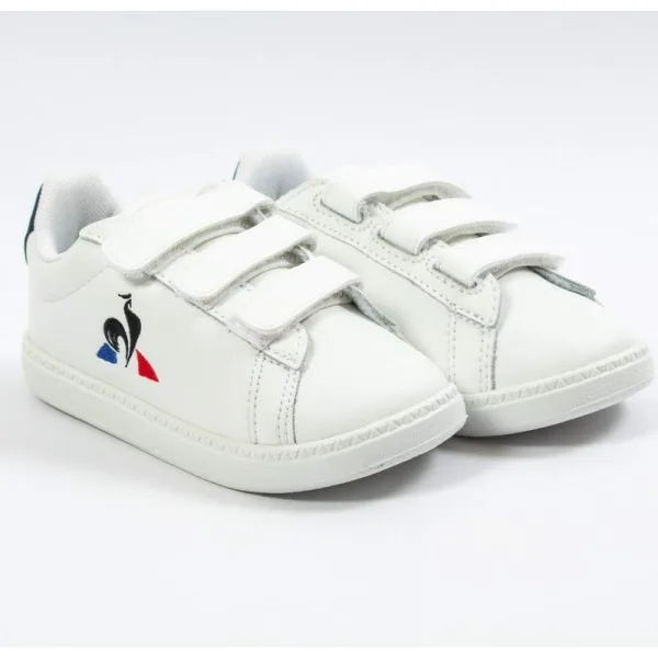 Le Coq Sportif Courtset Inf sneakers voor jongens, wit leer. Authentieke Le Coq Sportif sneakers - streetwear/sportswear design van Le Coq Sportif - Le Coq Sportif voor modebewuste jongens, perfect voor dagelijks gebruik - deze witte Le Coq Sportif sneakers passen perfect bij de rest van je garderobe - comfortabel leren bovenwerk - klassieke klittenbandsluiting - Courtset Inf - textiel.