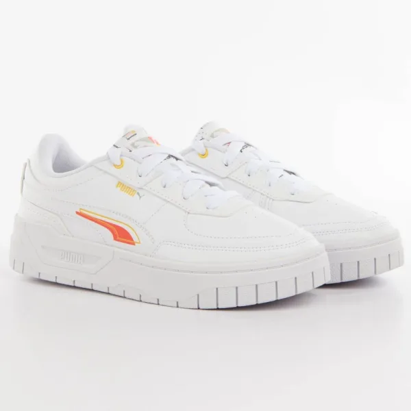 Puma Cali Dream Brand Love damessneakers, wit leer. Authentieke Puma-schoen - streetwear/sportswear design van Puma - Puma voor modebewuste vrouwen, perfect voor dagelijks gebruik - witte Puma sneakers passen perfect bij de rest van je garderobe - comfortabel leren bovenwerk - klassieke veters - Cali Dream Brand Love - synthetisch