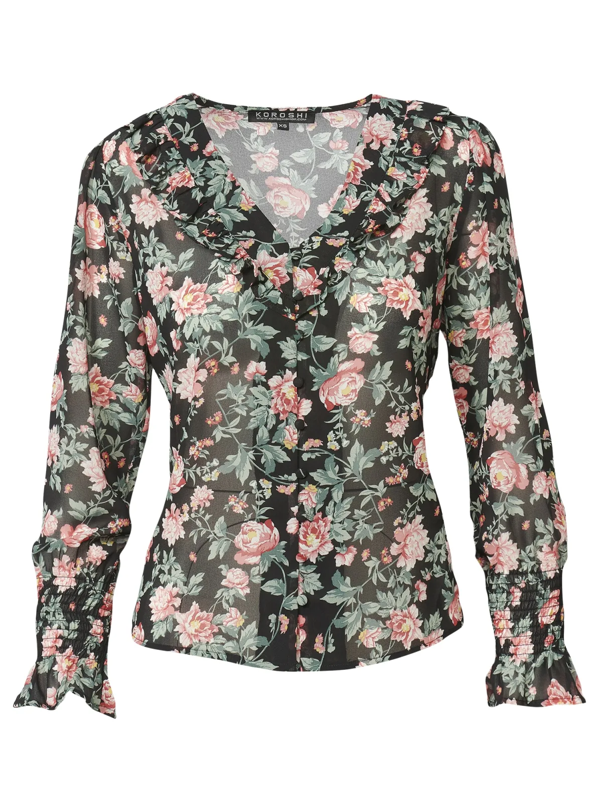 Blouse type: Blouseshirt; Motief: Bloemenprint; Kraag: Zonder kraag; Details: Volant, Gedrapeerd; Pasvorm: Normale pasvorm; Armlengte: Lange mouw; Lengte: Normale lengte