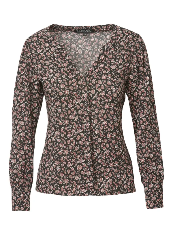 KOROSHI Blouse lichtbruin / rood / zwart / wit Prijzen