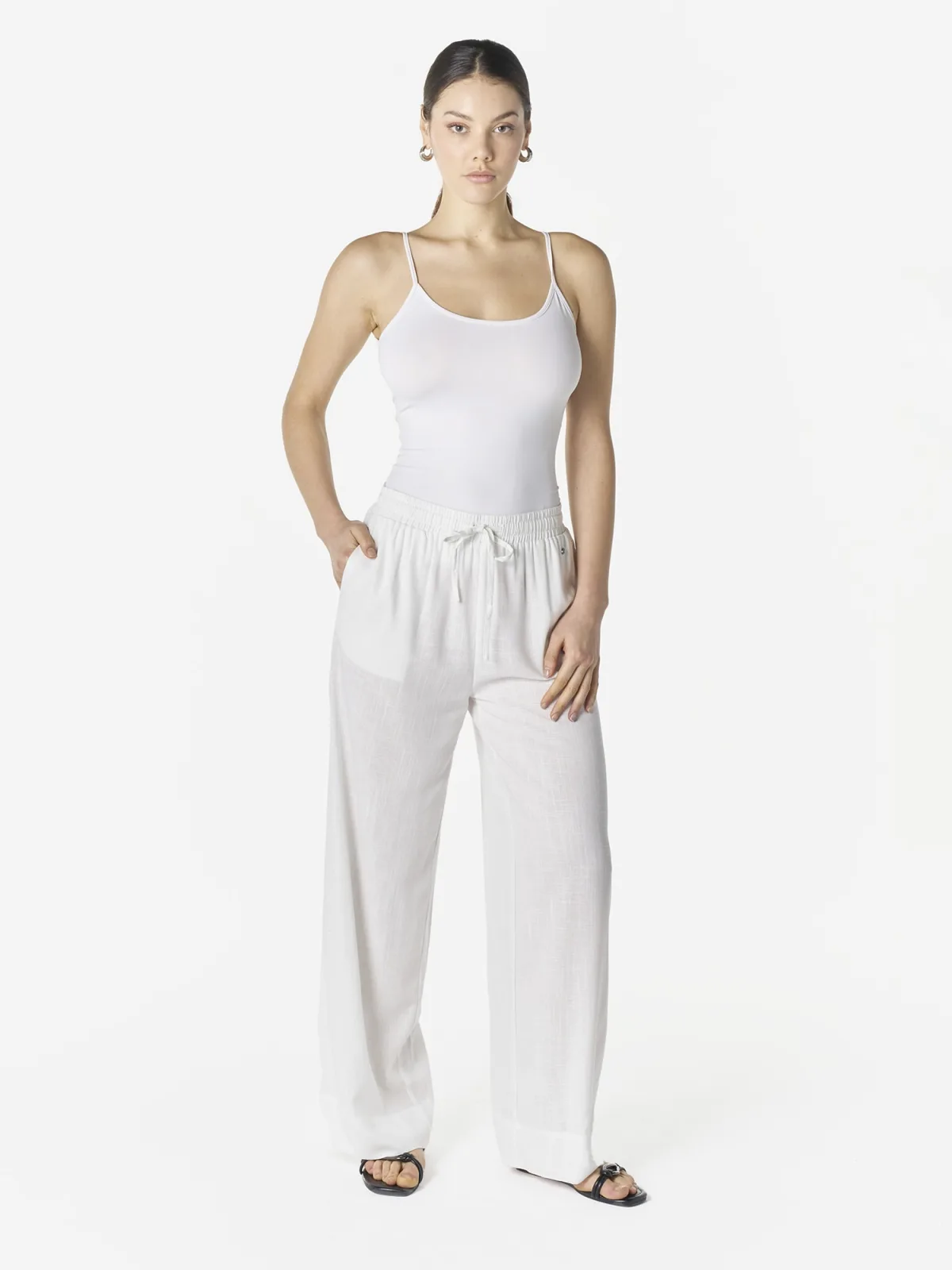 Design: Taille met trekkoord, Zakken aan de zijkant; Materiaal: Viscose; Motief: Mélange; Details: Gedrapeerd; Extra's: Licht transparant, Voelt zacht aan; Lengte: Lang/maxi; Pasvorm: Wide leg; Taillehoogte: Mid waist