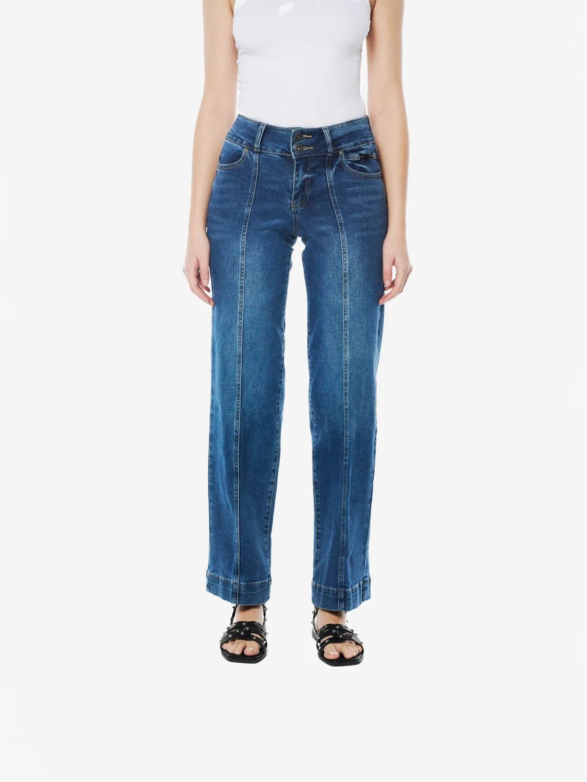 Design: Paspelzak, Zakken aan de zijkant; Type sluiting: Knoopsluiting; Materiaal: Denim; Motief: Effen; Extra's: Studs, Riemlussen; Wassing: Blauw denim; Lengte: Lang/maxi; Pasvorm: Loosefit; Taillehoogte: Mid waist