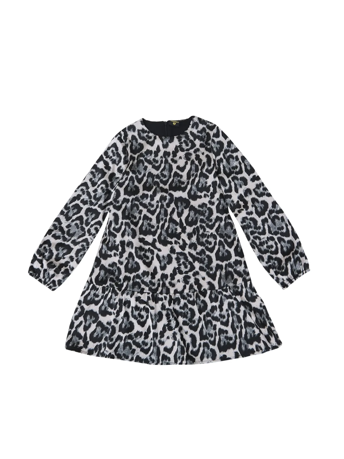 Design: Gevoerde zoom/rand; Type sluiting: Ritssluiting; Materiaal: Satijn; Halstype: Ronde hals; Motief: Dierenprint; Details: Volant, Gedrapeerd; Extra's: All-over patroon; Lengte: Kort/mini; Pasvorm: Normale pasvorm; Armlengte: Lange mouw