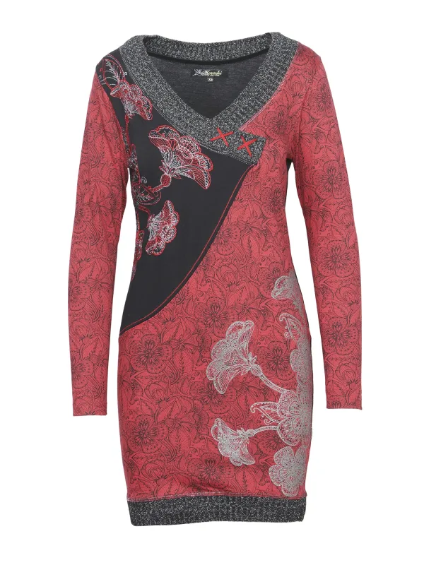 Specificaties: KOROSHI Jurk grijs / rood / zwart