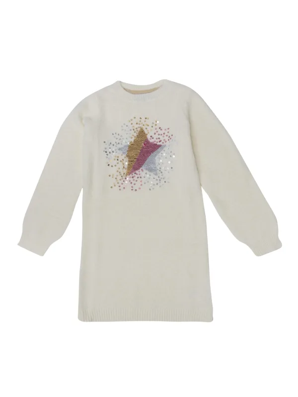 Design: Geribbelde kraag, Recht model, Geribd ceintuurtje; Materiaal: Knitwear; Halstype: Ronde hals; Motief: Motiefprint; Details: Pailletten; Extra's: Glitterend, Voelt zacht aan; Lengte: Knielengte; Pasvorm: Normale pasvorm; Armlengte: Lange mouw