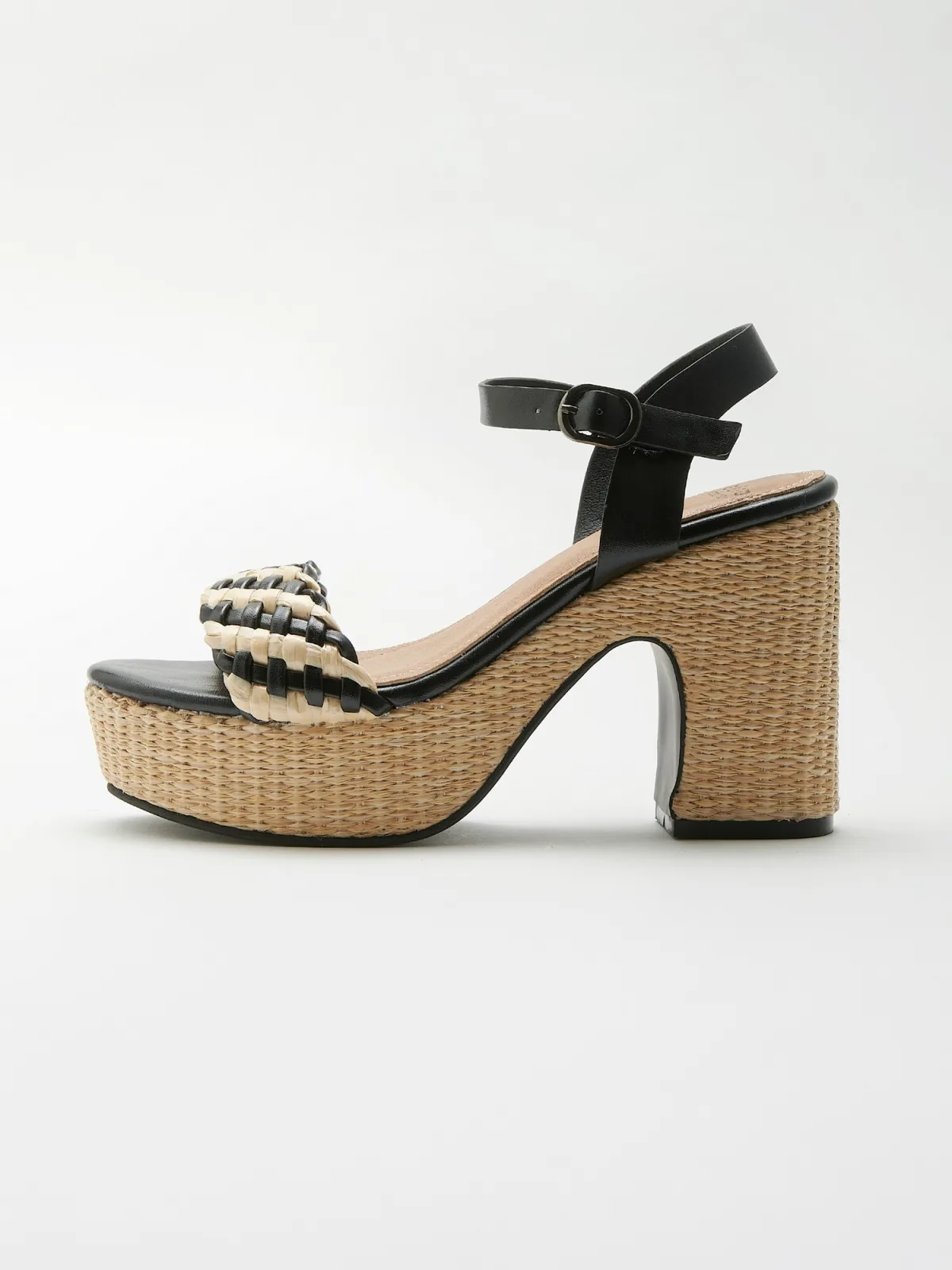 Design: Profielzolen; Type sluiting: Riemsluiting; Type hak: Blokhak; Plateau: Met plateau; Materiaal: Imitatieleer; Schoenneus: Open toe; Extra's: Flexibele zool; Hakhoogte: Middelhoge hak (3-7 cm)