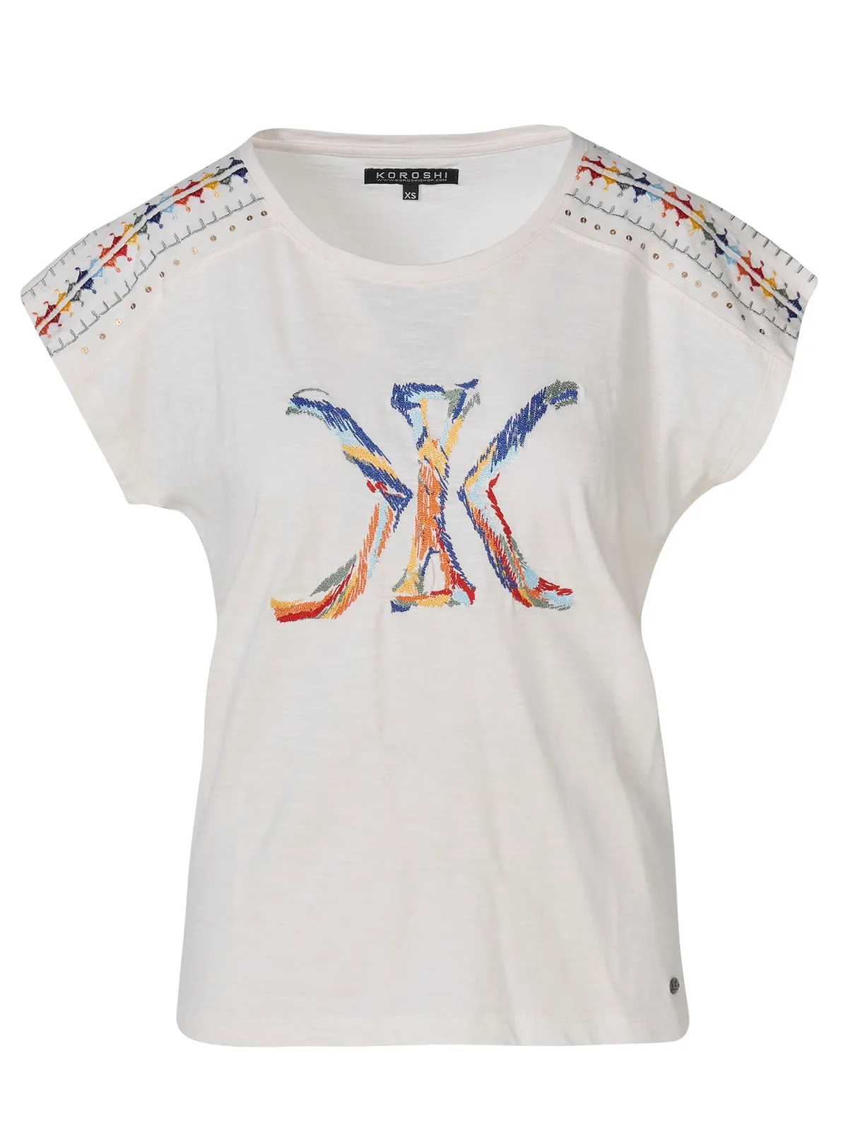 KOROSHI Shirt enziaan / lichtblauw / oranje / wit