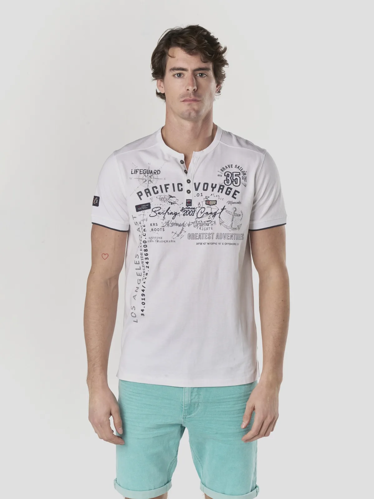 Design: Gevoerde zoom/rand, Knop placket, Nektape; Materiaal: Jersey; Halstype: Henley hals; Motief: Tekst print; Extra's: Label patch/label flag, Voelt zacht aan; Pasvorm: Normale pasvorm; Armlengte: Kwartmouw; Lengte: Normale lengte