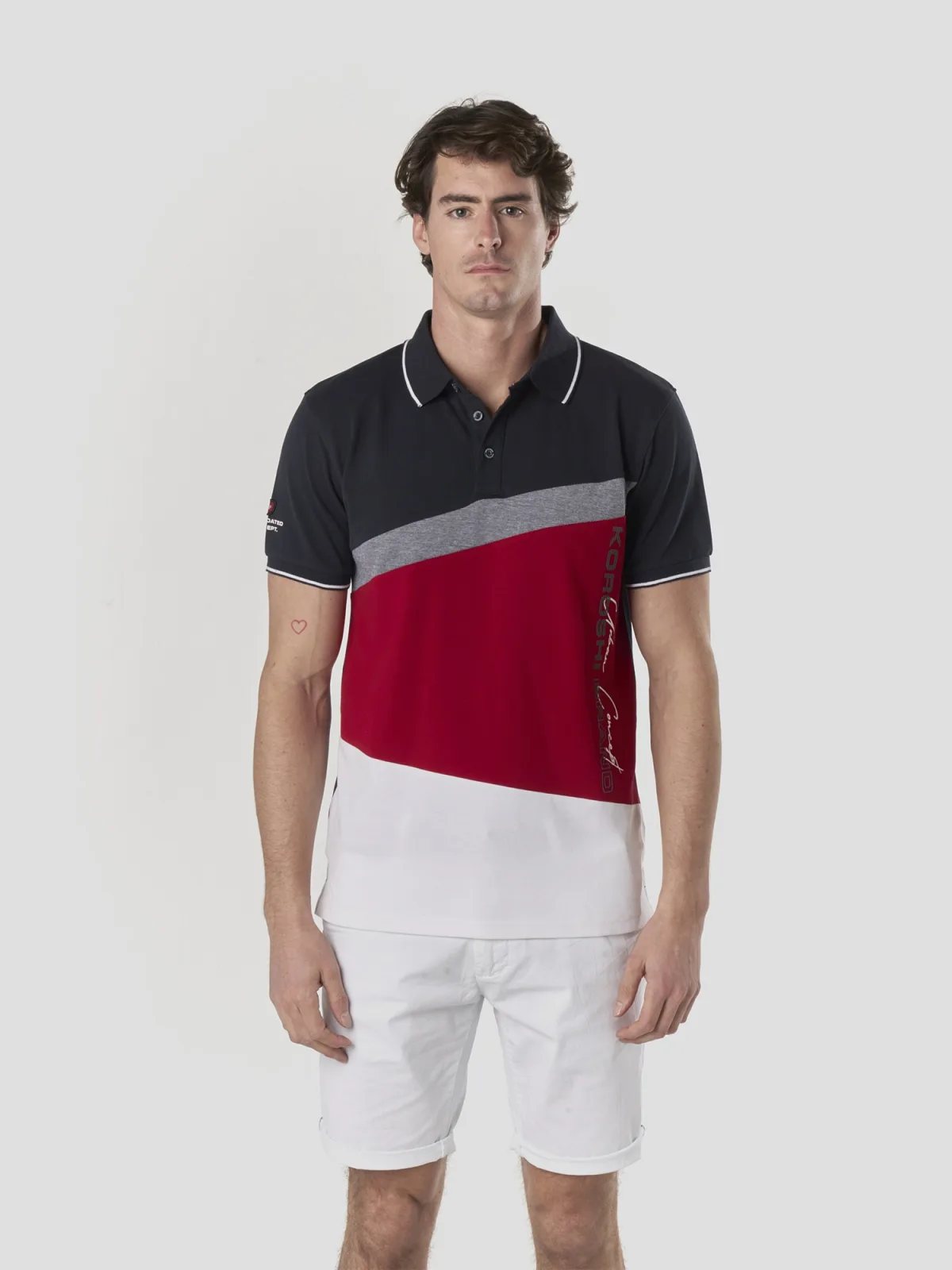 Specificaties: KOROSHI Shirt navy / grijs / rood / wit