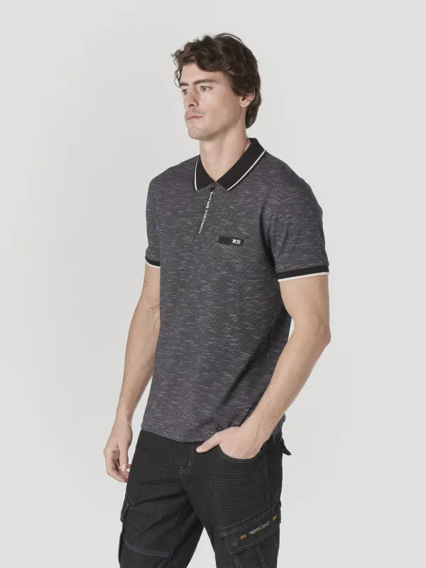Design: Gevoerde zoom/rand, Contrasterende inserts, Halve rits; Type sluiting: Ritssluiting; Materiaal: Katoen; Halstype: Polokraag; Motief: Mélange; Extra's: Met textuur, Voelt zacht aan, Label print; Pasvorm: Normale pasvorm; Armlengte: Kwartmouw; Lengte: Normale lengte
