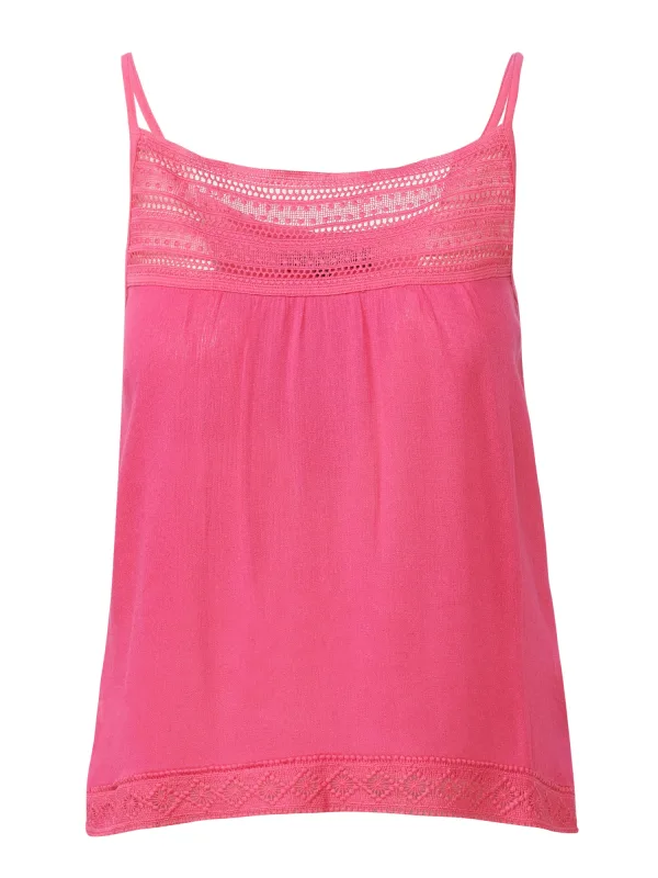 Blouse type: Blouseshirt; Design: Zijdelingse inkepingen; Materiaal: Viscose; Halstype: Ronde hals; Motief: Effen; Kraag: Zonder kraag; Soort bandjes: Spaghettibandjes; Details: Kant; Extra's: Voelt zacht aan; Pasvorm: Normale pasvorm; Armlengte: Mouwloos; Lengte: Normale lengte