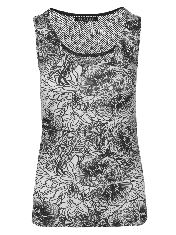 Design: Gevoerde zoom/rand, Rechte zoom; Materiaal: Jersey; Halstype: Ronde hals; Motief: Bloemenprint; Soort bandjes: Normale bandjes; Details: Mesh; Extra's: All-over patroon, Voelt zacht aan; Pasvorm: Normale pasvorm; Armlengte: Mouwloos; Lengte: Normale lengte