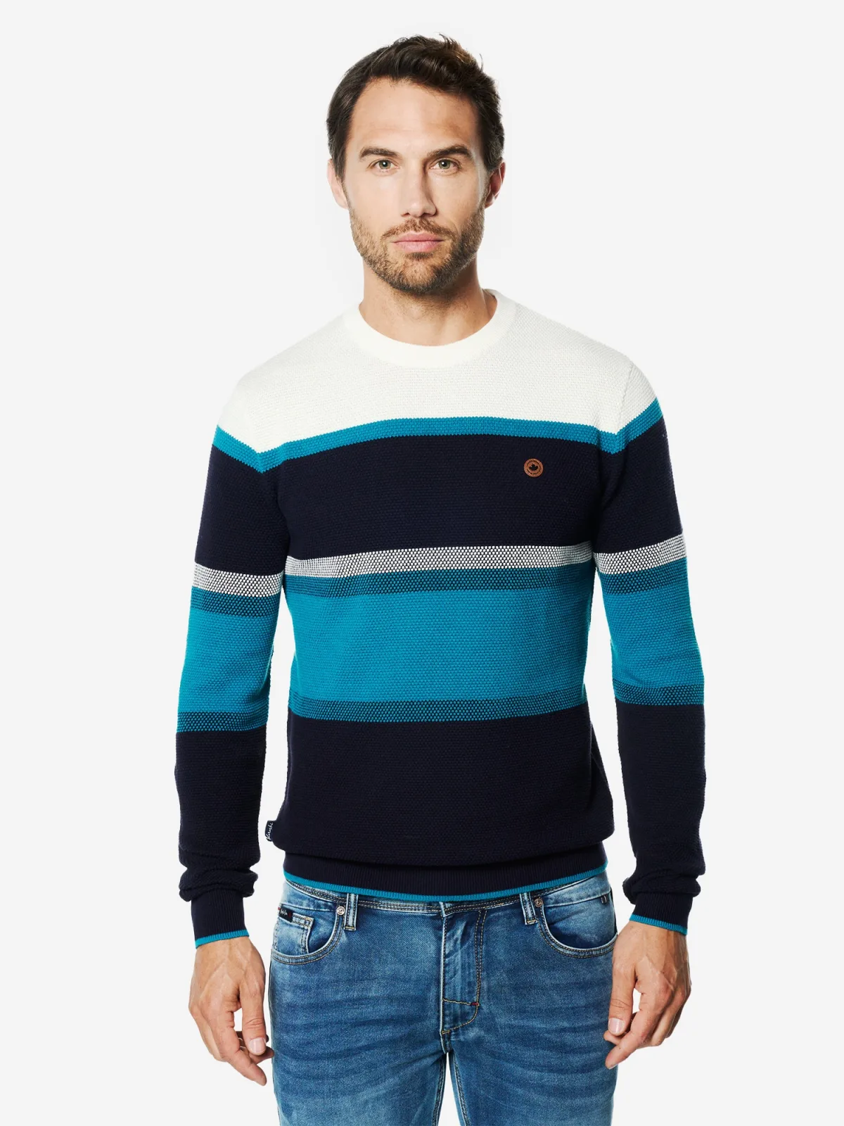 Design: Geribbelde kraag; Materiaal: Knitwear; Halstype: Ronde hals; Motief: Color-Blocking; Extra's: Voelt zacht aan; Pasvorm: Normale pasvorm; Armlengte: Lange mouw