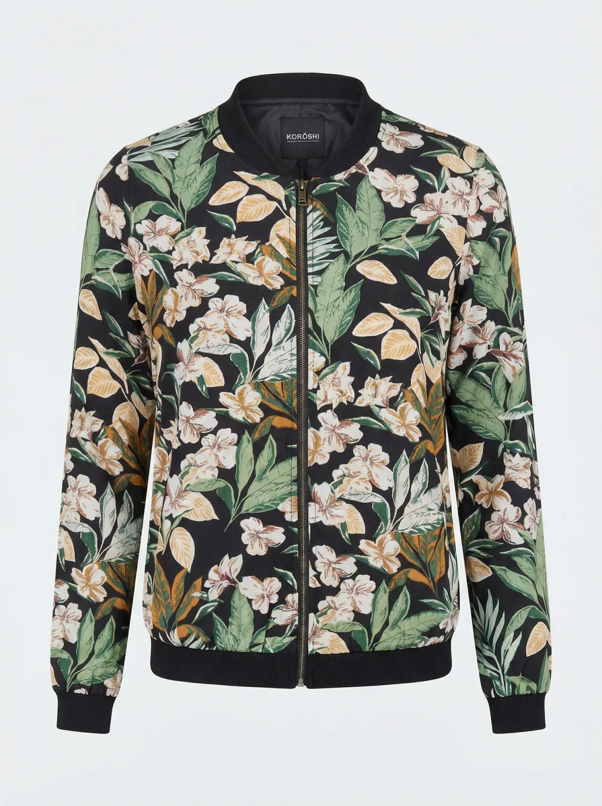 Design: Geribd ceintuurtje; Type jas: Bomberjack; Voering: Licht gevoerd; Motief: Bloemenprint; Extra's: All-over patroon; Pasvorm: Normale pasvorm
