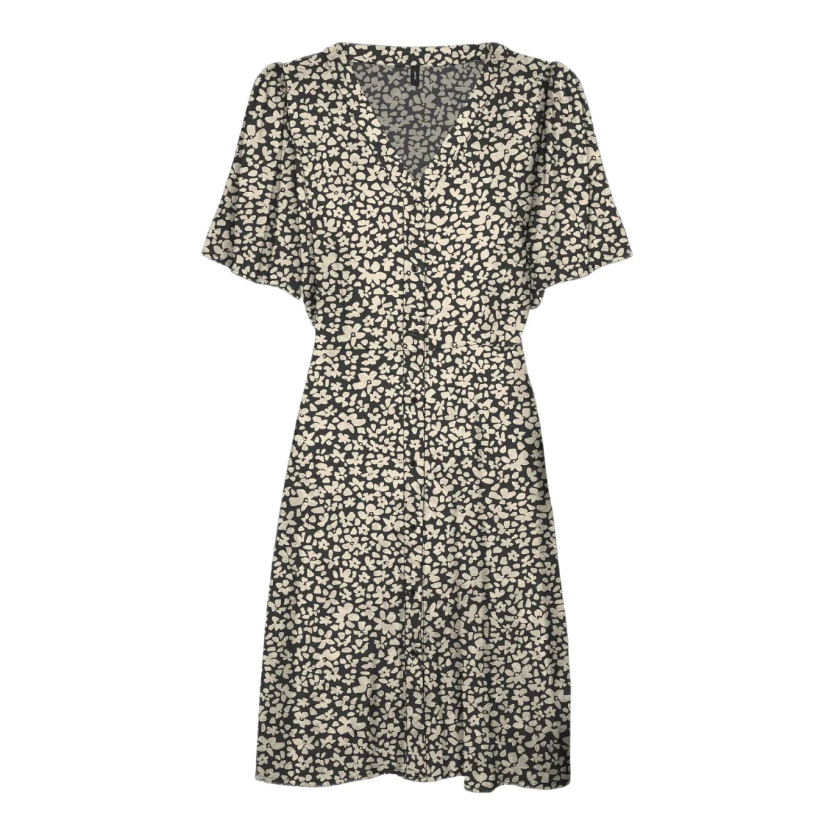 Detail : Jurk Lengte/Maat: Kort Extra details: Riem in taille Knopen Gelegenheid/Stijl: Deze jurk is de perfecte keuze voor die dagen waarop het onmogelijk lijkt om een outfit samen te stellen. De combinatie van comfort en stijl maakt deze jurk tot een perfect alledaags kledingstuk. Je kunt hem naar eigen smaak omhoog of omlaag dragen. Snit : Regular Fit Hals : V-hals Mouwen : Korte mouw (S/S)