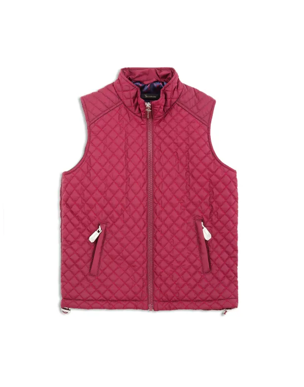 Padded and quilted nylon vest. Zip fastening. Two zipped pockets. Fully lined.