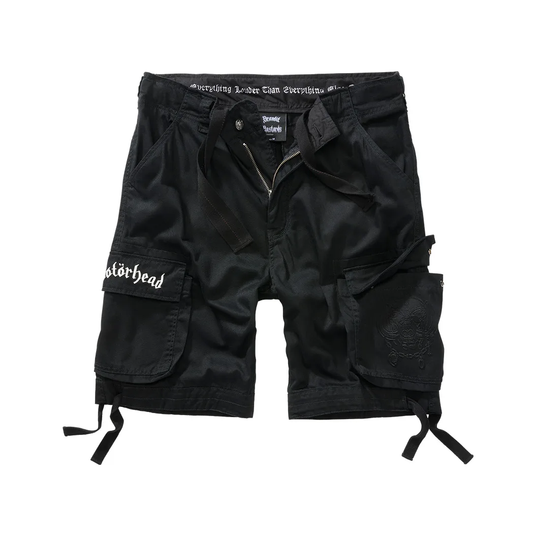 3D-print van de Warpig op de linkerbovenbeenzak / geborduurde Motörhead-lettering op de rechterbovenbeenzak / Warpig-sluitknop / "Everything Louder Than Everything Else" print op de taille / afneembare Motörhead-speld / lichte katoenkwaliteit / 2 zijzakken voor gemakkelijke toegang / trekkoord / gewassen katoen
