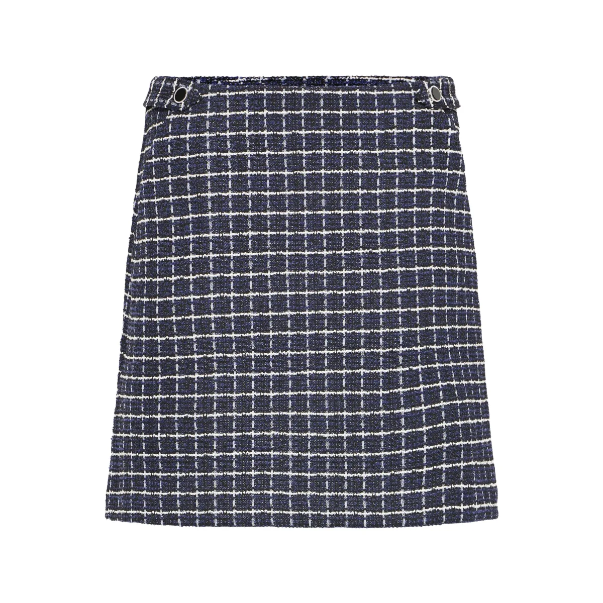 Tweed rok voor vrouwen met een rechte snit en een subtiele A-lijn. Korte stijl met een knoopdetail aan de zijkant. Comfortabel om te dragen; ideaal voor kantoor of vrije tijd.