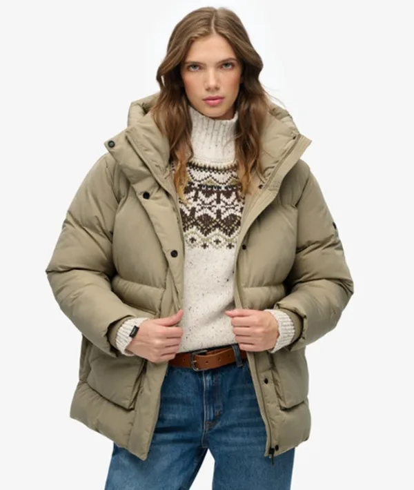 Relaxte pasvorm - de klassieke Superdry-pasvorm. Niet te nauwsluitend, niet te ruim, precies goed. Kies je gebruikelijke maat Duurzaam waterafstotend materiaal - Deze stof heeft een geavanceerde waterbestendige coating Met capuchon, tweede kraag en verstelbaar elastisch trekkoord in de capuchon Rits- en drukknoopsluiting met vier buitenzakken Geribde boorden en volledig gevoerd Kenmerkend label op de achterkant en badge op de mouw De korte Duvet-pufferjas is een prachtige manier om dit seizoen c