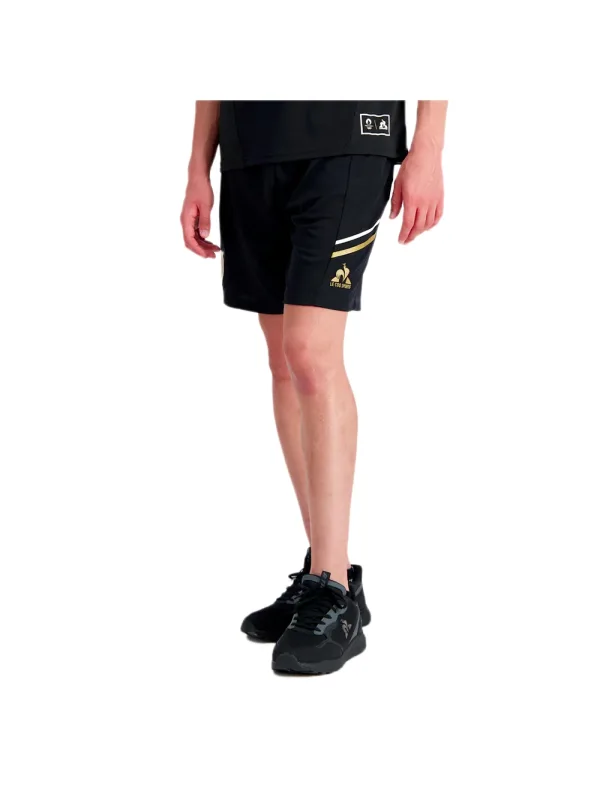 Le Coq Sportif Olympique Paris herenshorts, zwart polyester. Authentiek Le Coq Sportif kledingstuk - streetwear/sportkleding design van Le Coq Sportif - Le Coq Sportif herenmode, perfect voor dagelijks gebruik - De zwarte Le Coq Sportif shorts zijn ideaal te combineren met de rest van je garderobe - comfortabele polyesterstof - klassiek - Olympique Paris -