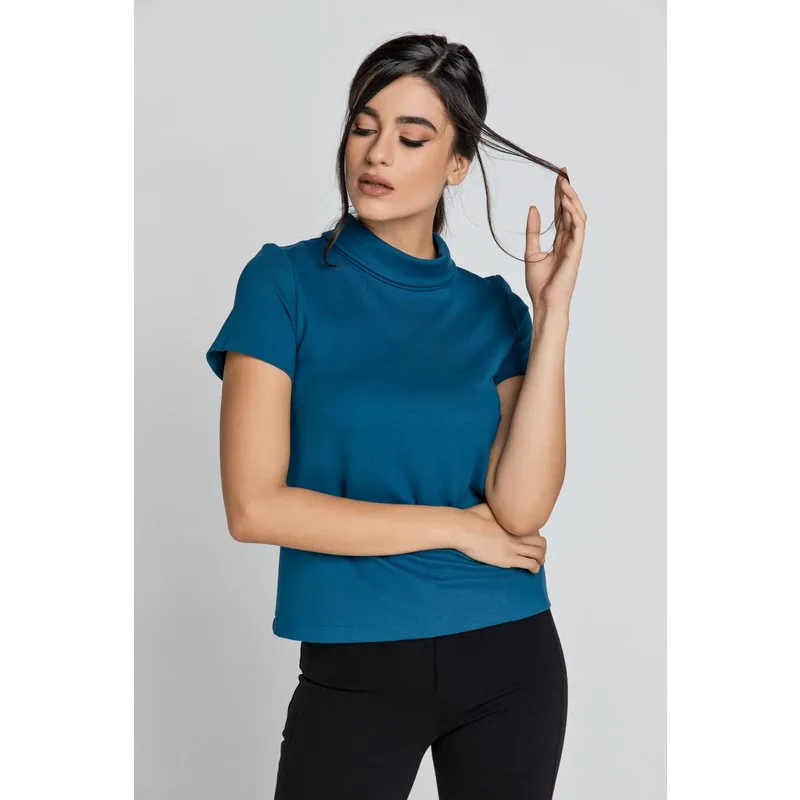 Korte Mouwen Petrol Blauwe Top