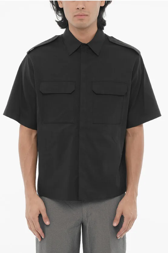 Stel Notificatie voor Product in: Kortmouwloos overhemd met dubbele borstzak in zwart - €190,00