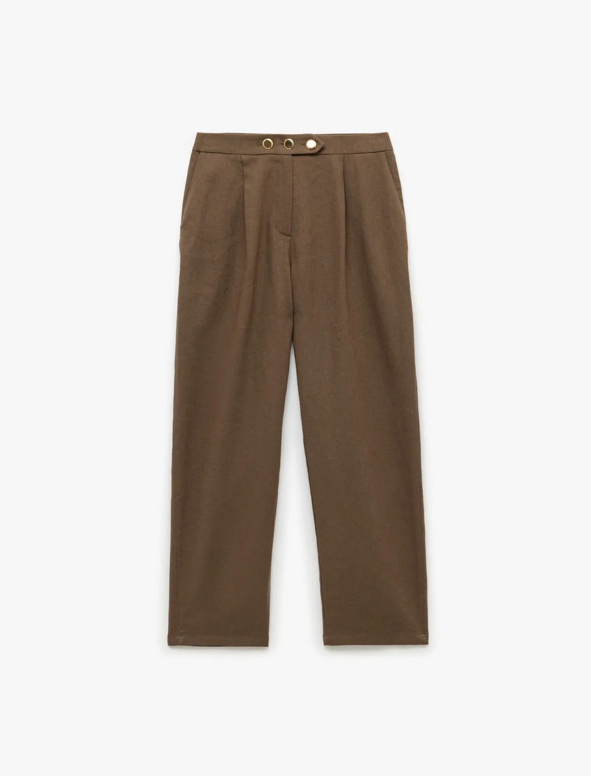 Design: Gevoerde zoom/rand; Type sluiting: Ritssluiting; Materiaal: Linnen; Motief: Effen; Details: Plooien; Extra's: Op staal naden; Lengte: 7/8 lengte; Pasvorm: Loosefit; Taillehoogte: Mid waist
