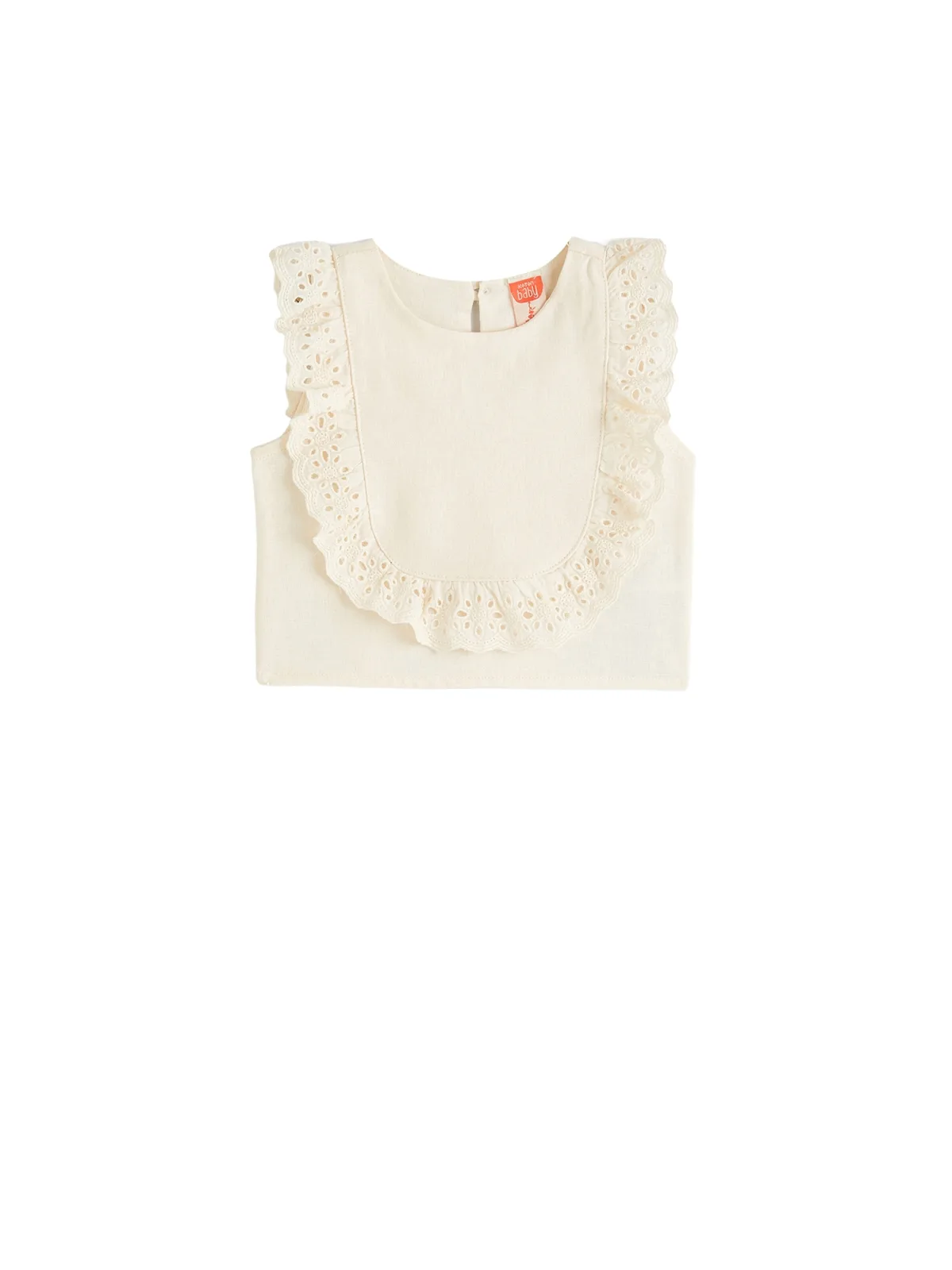 Design: Gevoerde zoom/rand; Type sluiting: Knoopsluiting; Materiaal: Linnen; Halstype: Ronde hals; Motief: Effen; Kraag: Zonder kraag; Details: Borduursels, Mesh; Extra's: Op staal naden; Pasvorm: Normale pasvorm; Armlengte: Mouwloos; Lengte: Normale lengte