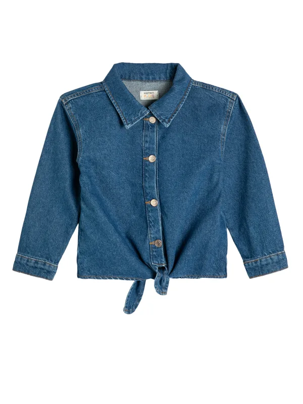 Design: Om te knopen/binden; Type sluiting: Knoopsluiting; Materiaal: Denim; Motief: Effen; Kraag: Kentkraag; Details: Gedrapeerd; Extra's: Contrasterende naden, Gewassen effect; Pasvorm: Normale pasvorm; Armlengte: Lange mouw; Lengte: Normale lengte
