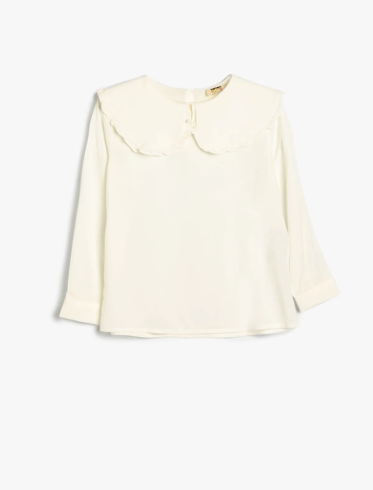 Design: Keyholesluiting; Type sluiting: Knoopsluiting; Materiaal: Viscose; Motief: Effen; Kraag: Peter pan kraag; Details: Ruches; Extra's: Voelt zacht aan; Pasvorm: Normale pasvorm; Armlengte: Lange mouw; Lengte: Normale lengte