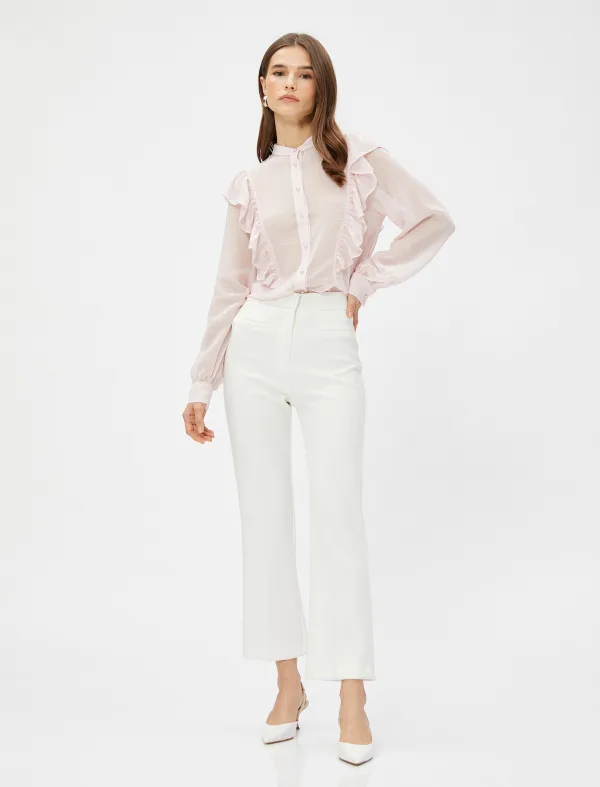 Blouse type: Wijde blouse; Design: Gevoerde zoom/rand; Type sluiting: Knoopsluiting; Motief: Gestreept; Kraag: Opstaande kraag; Details: Ruches, Gedrapeerd; Extra's: Gladde stof; Pasvorm: Losse pasvorm; Armlengte: Lange mouw; Lengte: Normale lengte