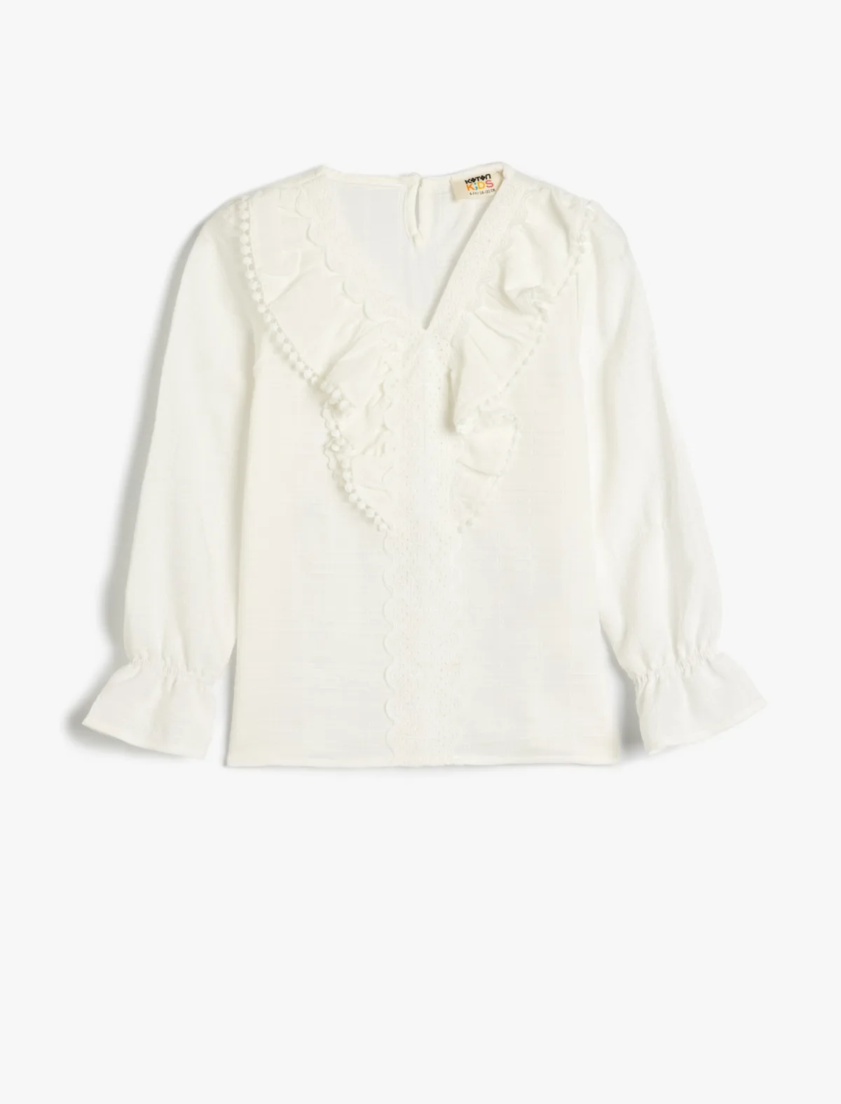 Design: Gevoerde zoom/rand; Type sluiting: Knoopsluiting; Materiaal: Katoen; Motief: Effen; Kraag: Zonder kraag; Details: Borduursels, Volant, Gedrapeerd; Extra's: Op staal naden; Pasvorm: Normale pasvorm; Armlengte: Lange mouw; Lengte: Normale lengte