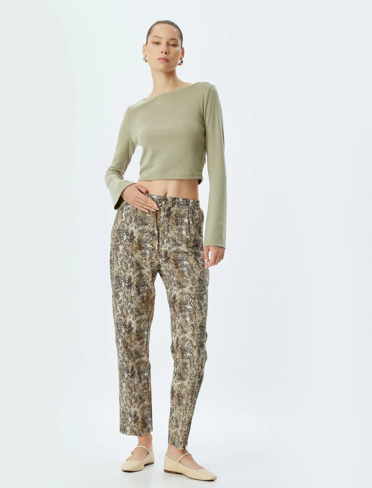 Materiaal: Viscose; Motief: Dierenprint; Lengte: 7/8 lengte; Pasvorm: Tapered; Taillehoogte: Mid waist