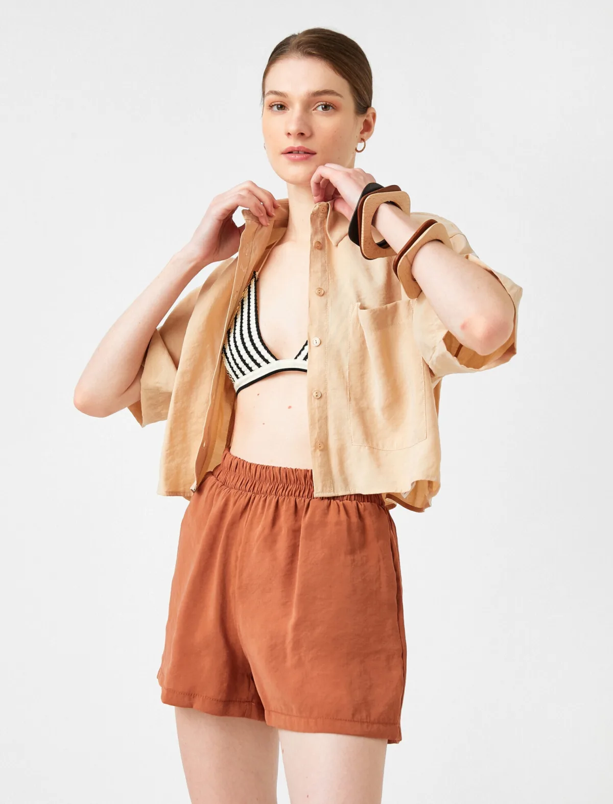 Design: Elastische taille/zoom; Motief: Effen; Details: Gedrapeerd; Extra's: Op staal naden, Gladde stof; Lengte: Kort/mini; Pasvorm: Regular; Taillehoogte: High waist