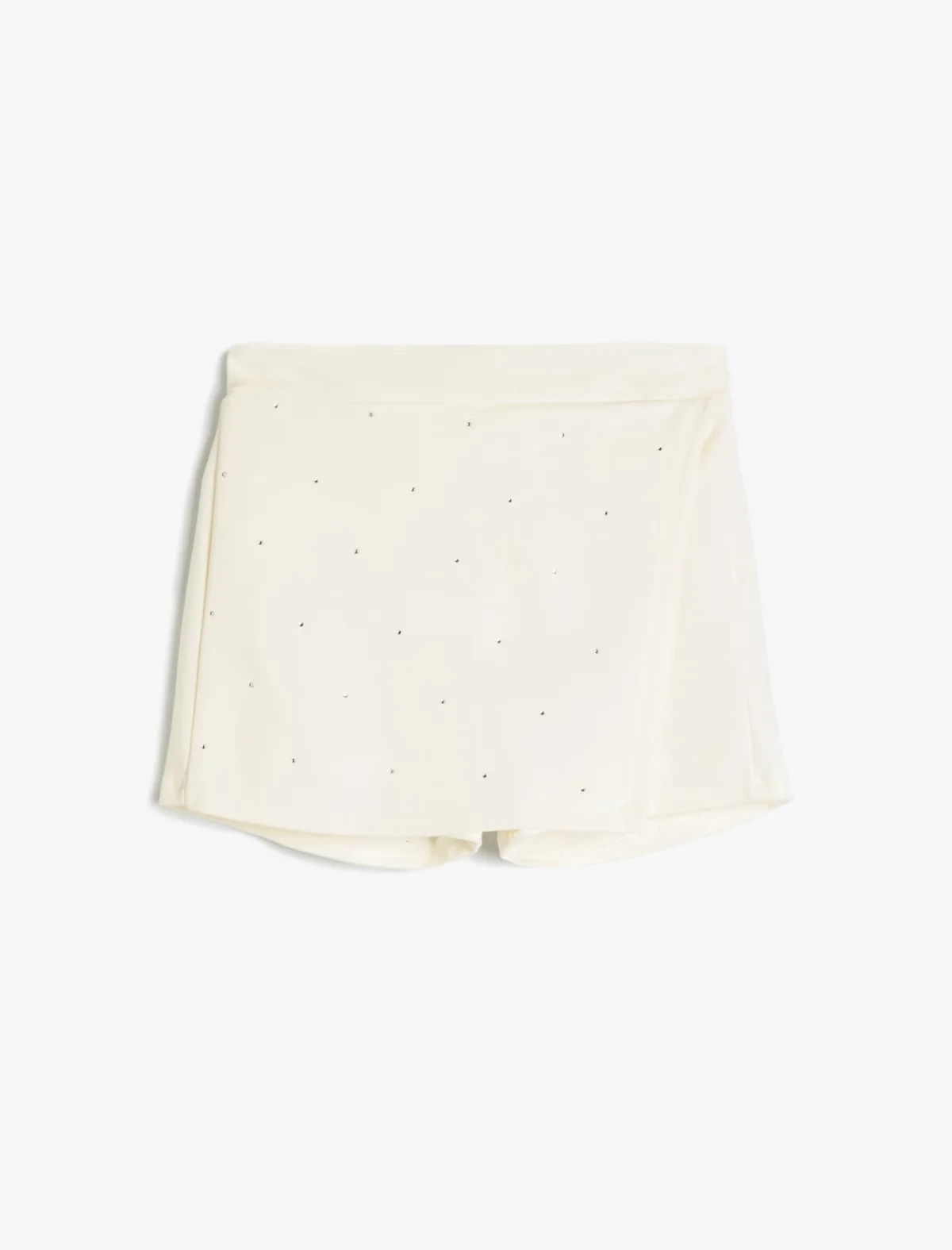 Design: Elastische taille/zoom; Materiaal: Viscose; Motief: Effen; Details: Sierstenen; Extra's: Applicaties; Lengte: Kort/mini; Pasvorm: Regular