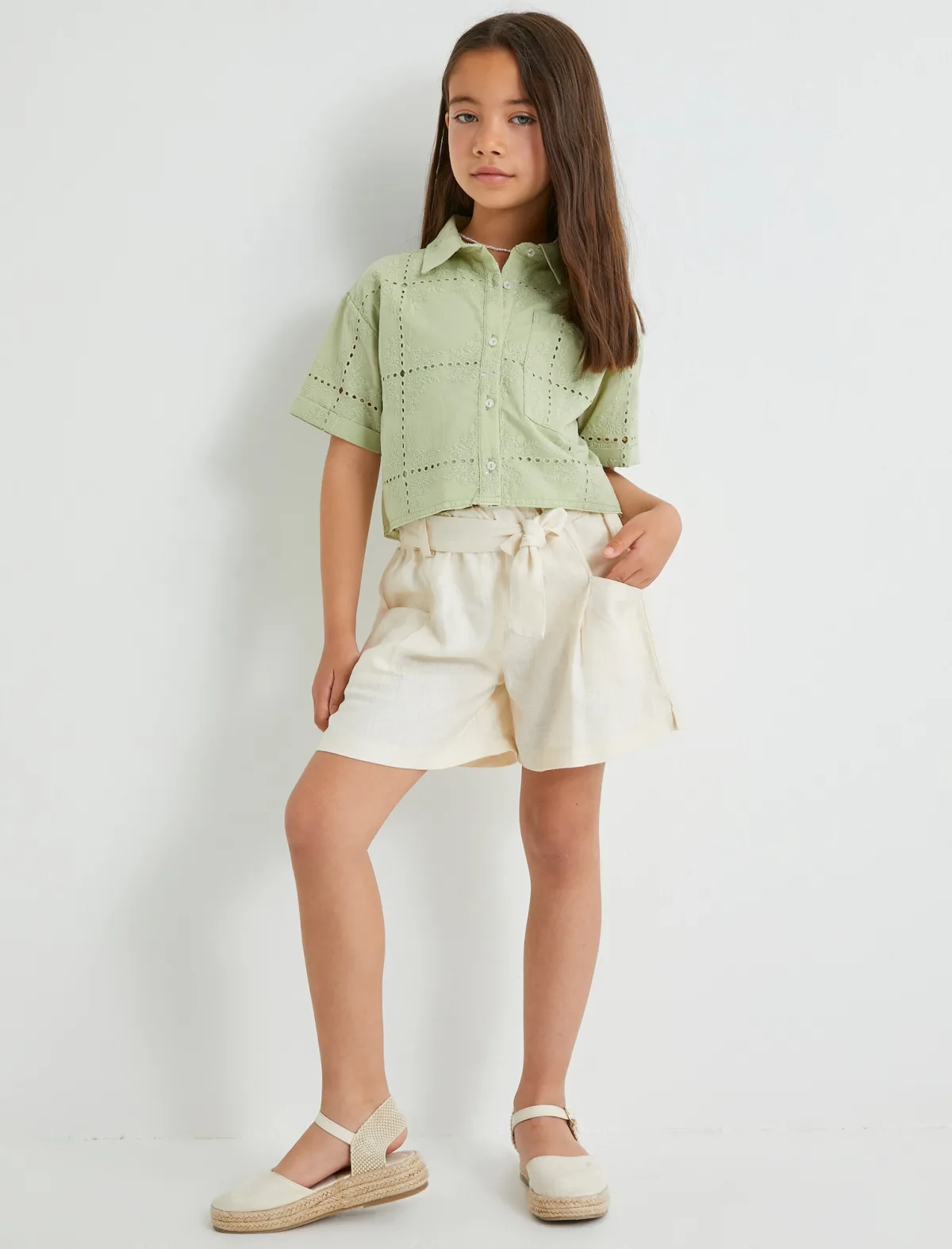 Design: Zakken aan de zijkant; Materiaal: Linnen; Motief: Effen; Details: Gedrapeerd; Extra's: Op staal naden; Lengte: Kort/mini; Pasvorm: Loosefit