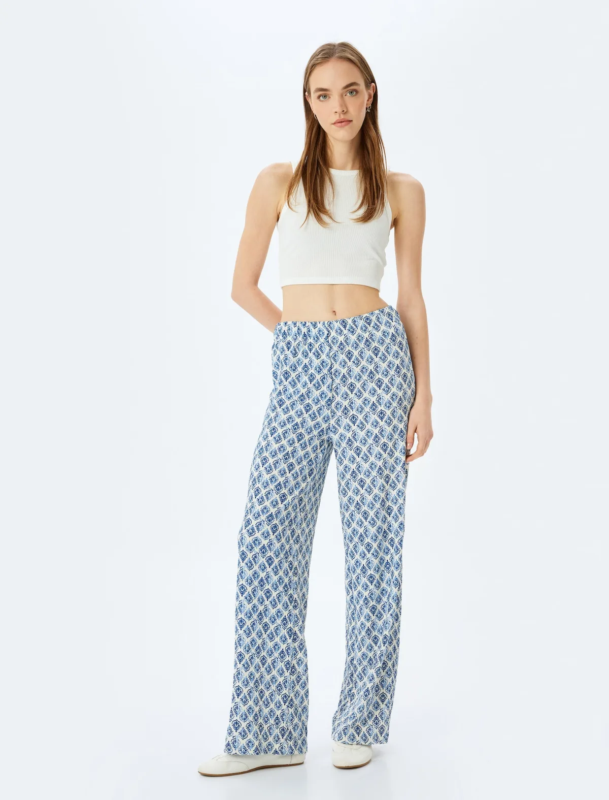 Design: Elastische taille/zoom; Extra's: All-over patroon; Lengte: Lang/maxi; Pasvorm: Wide leg; Taillehoogte: Mid waist