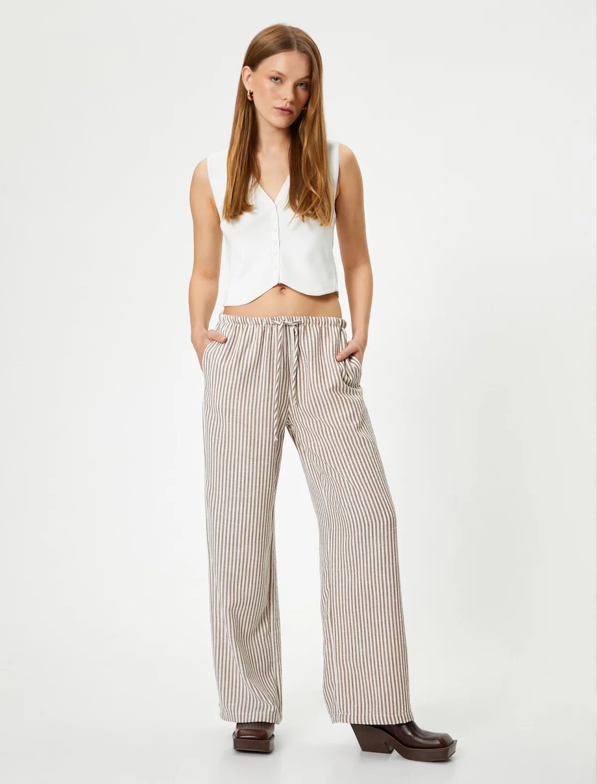 Design: Gevoerde zoom/rand; Type sluiting: Elastische band; Motief: Gestreept; Details: Cut-outs; Extra's: All-over patroon; Lengte: Lang/maxi; Pasvorm: Wide leg; Taillehoogte: Mid waist