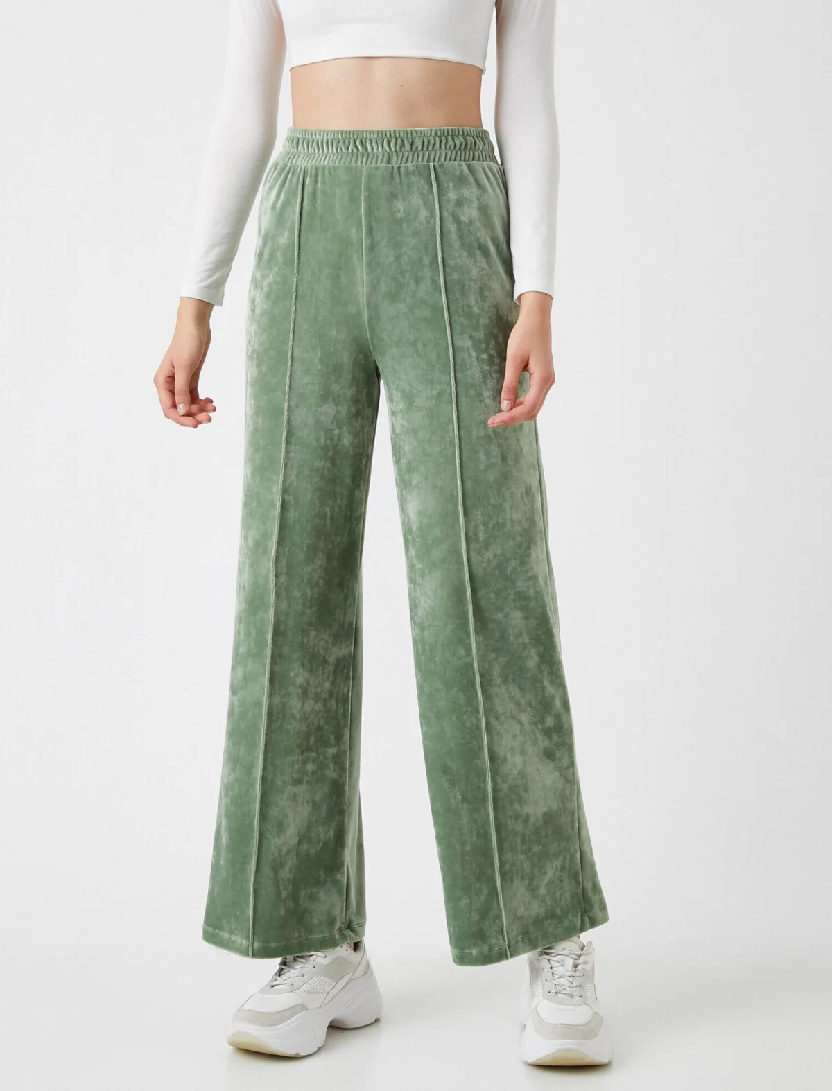 Design: Gevoerde zoom/rand, Elastische taille/zoom; Materiaal: Fluweel/Nicky Velours; Motief: Effen; Extra's: Op staal naden, Voelt zacht aan; Lengte: 7/8 lengte; Pasvorm: Wide leg; Taillehoogte: High waist
