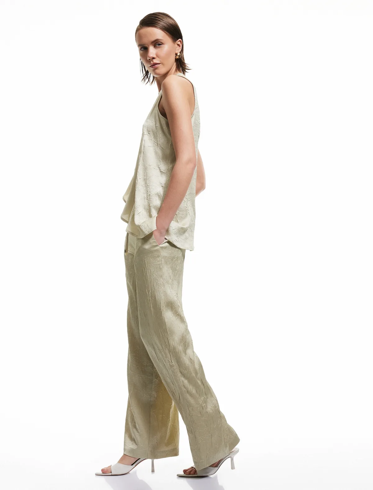 Design: Taille met trekkoord, Zakken aan de zijkant; Materiaal: Satijn; Motief: Effen; Extra's: Glinsterend, Gestructureerd oppervlak; Lengte: Lang/maxi; Pasvorm: Wide leg; Taillehoogte: High waist